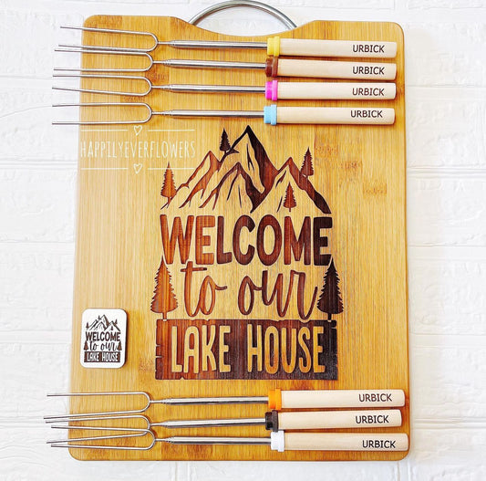 S’more board and sticks, campfire board and sticks, marshmallows sticks, hotdog sticks, personalized board and stick