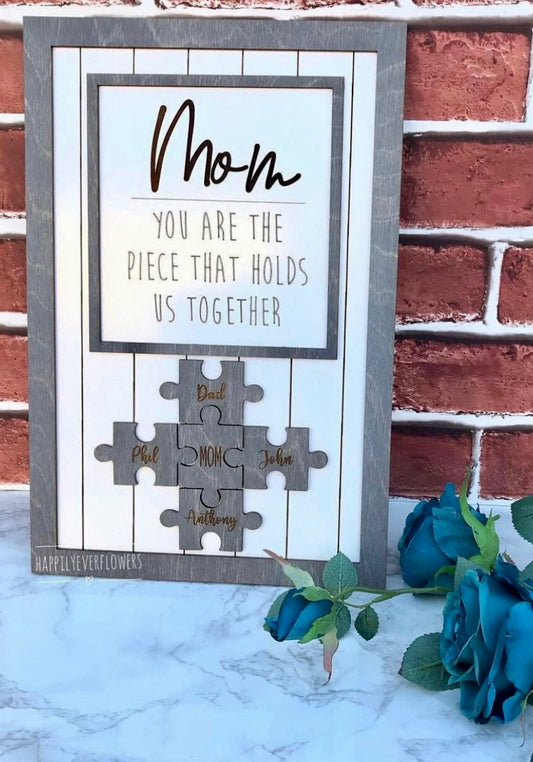 Mother’s Day gift, mom puzzle, mom you are the piece that holds us together, moms sign, gift for mom, gift for mother