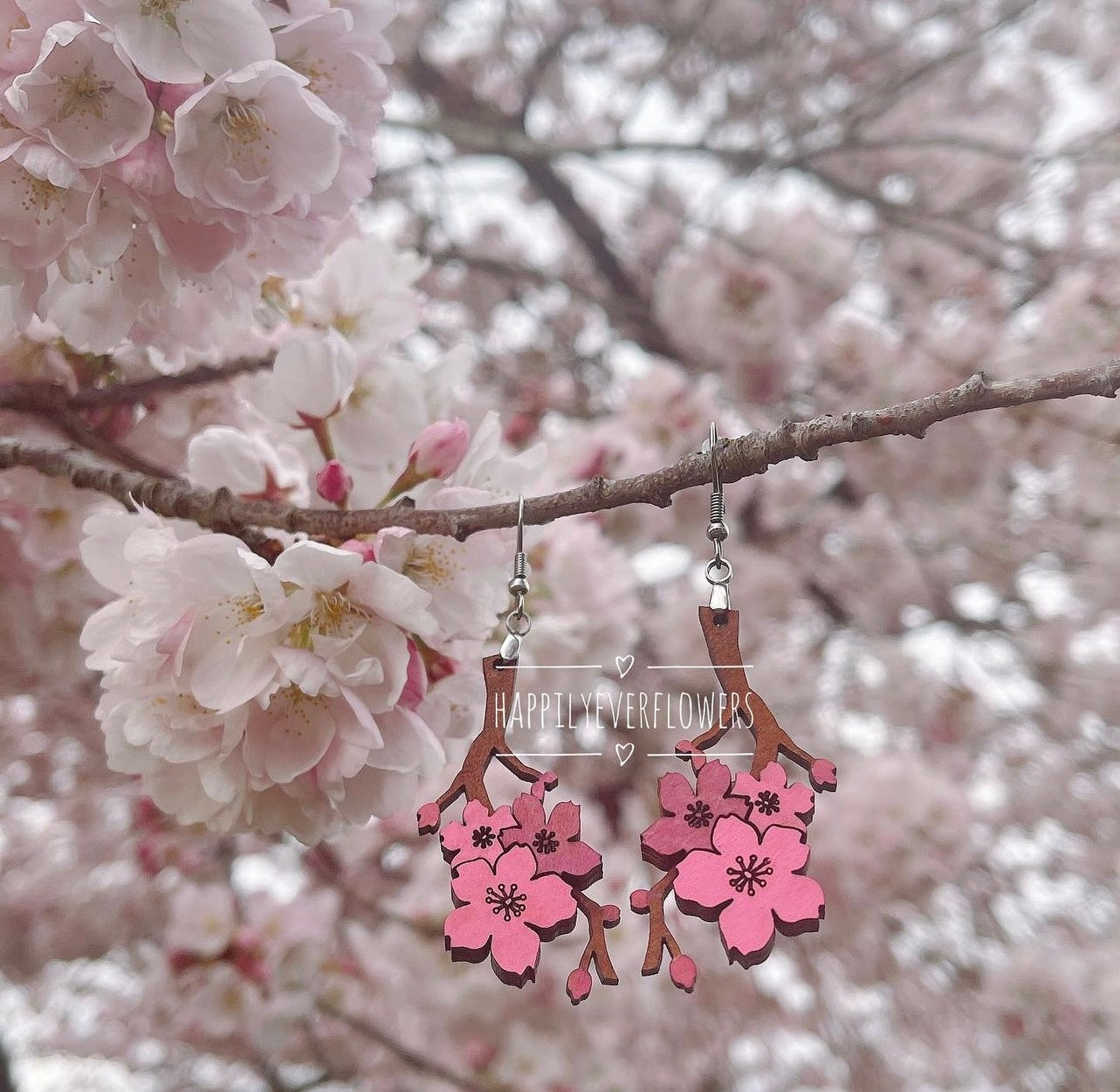 These cherry blossom dangle earrings are perfect for any season. They are hand painted, hypoallergenic and made from wood. Show off your style with these pretty floral earrings, perfect for any occasion.